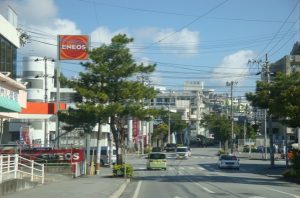 ①(経塚十字路) 首里平良方面から来た場合は、経塚十字路エネオスを左折。